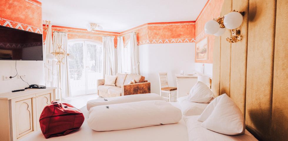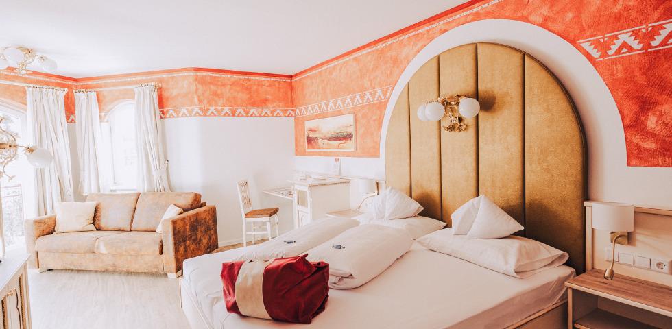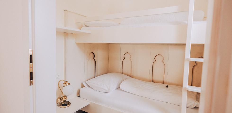 You don't simply stay in our König Ludwig suites. You reside. Generously sized bedrooms, cozy bay with lounge and integrated bunk-bed room. Bathroom and separate toilet.