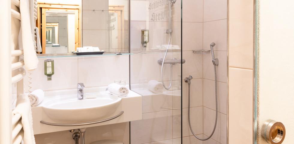 The "König Ludwig" junior suites are our so-called snoring rooms or family junior suites featuring sleeping area and, separated by a sliding door, cozy living space with large flat screen tv, ladies' dressing table and panorama balcony with fantastic view to the Kornock summit. All our rooms feature wooden floors.