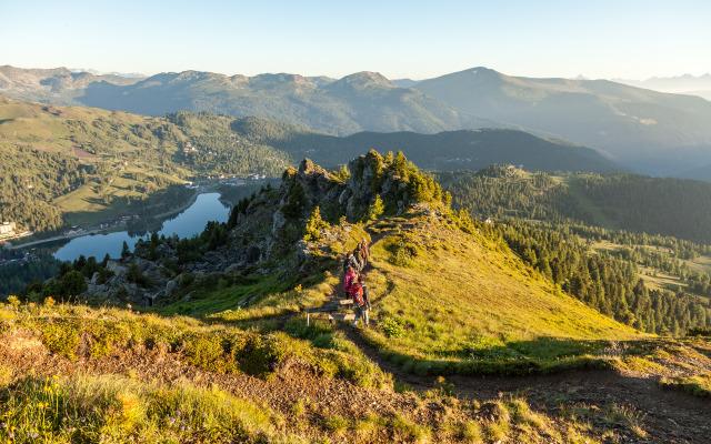 Tutto nei Nockberge, sulla Turracher Höhe! Dolci passeggiate da 1.700 a 2.500 metri di altitudine, direttamente dallo Schlosshotel Seewirt oppure percorrete i primi metri di altitudine con la cabinovia per “abituarvi”.