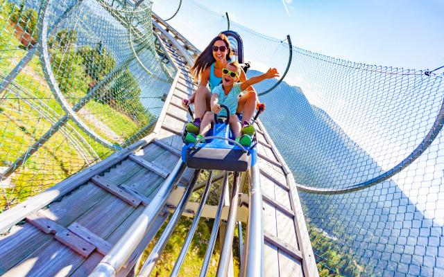 Fate largo... al Nocky Flitzer sulla Turracher Höhe! Con l'impianto di risalita panoramico si sale fino allo straordinario ottovolante delle Alpi carinziane. In inverno ed estate grandi e piccini possono cimentarsi in corse downhill su rotaie, lungo una pista di 1.600 m.